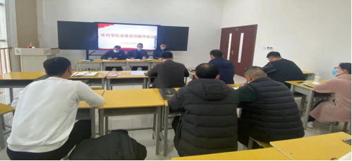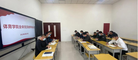 2022323日下午,体育学院召开全体党员教师会议,会议由党总支书记王晖主持。会议传达了中共中央疫情防控措施及要求,号召大家树立党员模范带头作用。王晖号召,党员教师要遵守疫情防控工作的规定,自觉做好模范带头作用,关键时刻要勇于担当,抗疫救灾要冲在一线,发挥党员在疫情防控中发挥先锋模范作用,让党旗在疫情防控中高高飘扬。